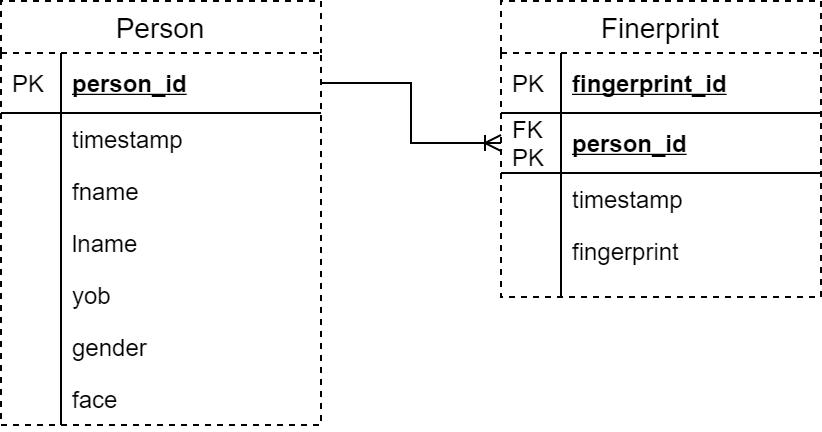 Es existieren Personen und Fingerabdrücke mit einer 1:N Beziehung.