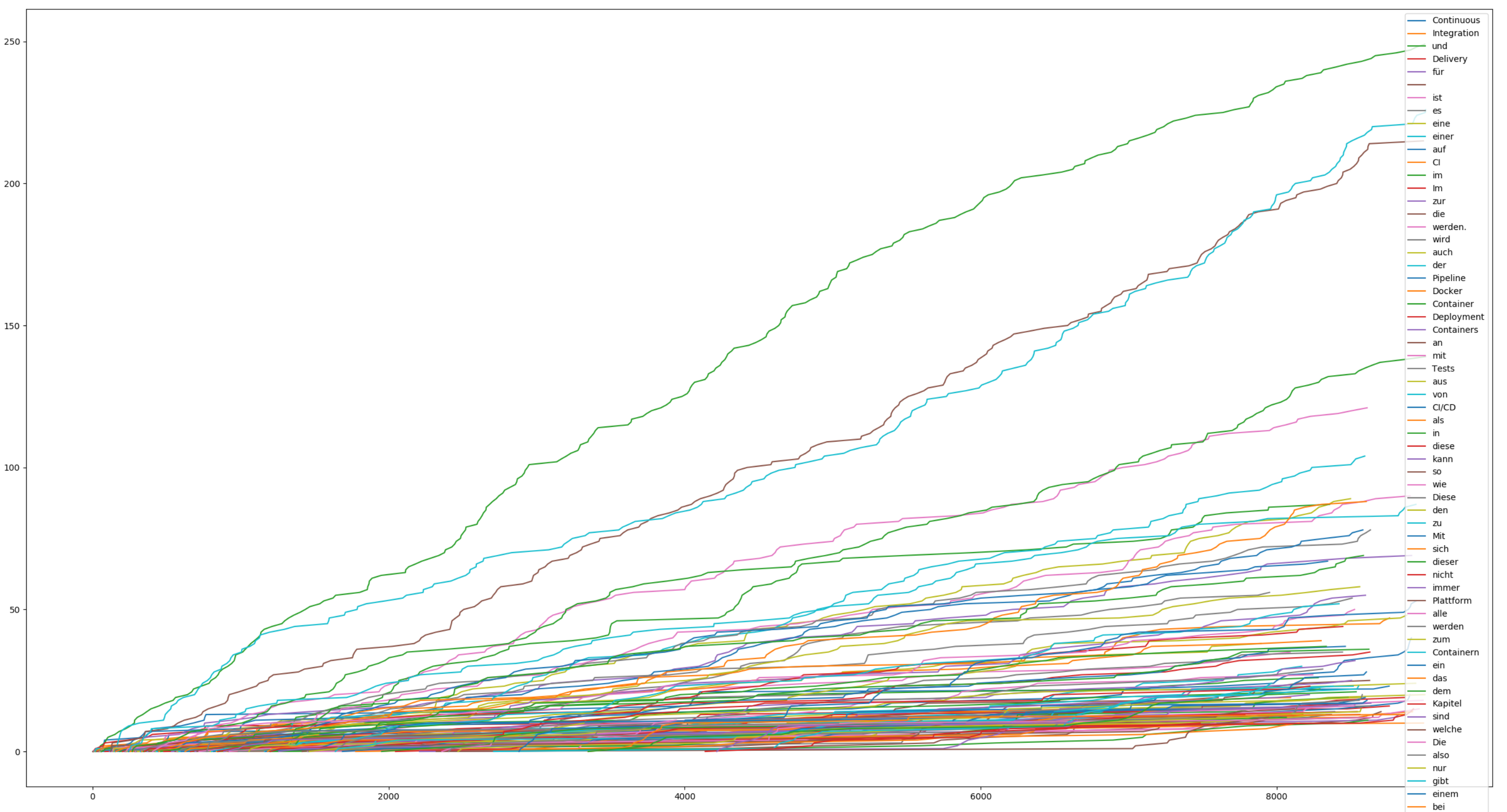 Plots usage of words over the lenght of a given text.